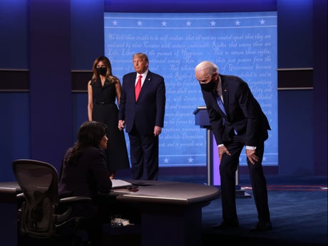 In her letter, Ms McDaniel praised Mr Trump for “his background in television”, leading him to spot that the glass shields put up between the candidates to prevent the spread of Covid-19 would cause the candidates to only see their own reflections and not each other once the stage had been lit for broadcast.