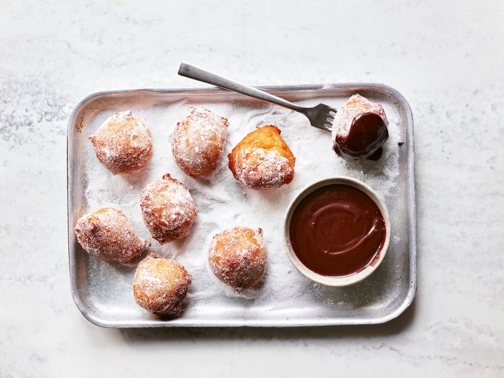 “Thanks to the ricotta, the doughnuts are golden and crunchy on the outside but light and pillowy inside, and amazing when dipped in chocolate sauce. You don’t have to add the chilli, but it adds a warmth to the chocolate that really works.”