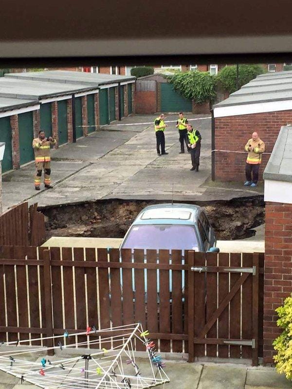 “A fire engine and police officers turned up and this lady was shaking. She said she was worried about falling into the sinkhole and it was a shock to find the ground collapsed.