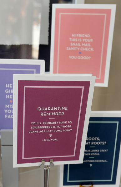 Among her bestsellers are cards that say, "Hi friend, this is your snail mail sanity check. You good?" and "Waving from a safe distance. It's just not the same over Zoom."