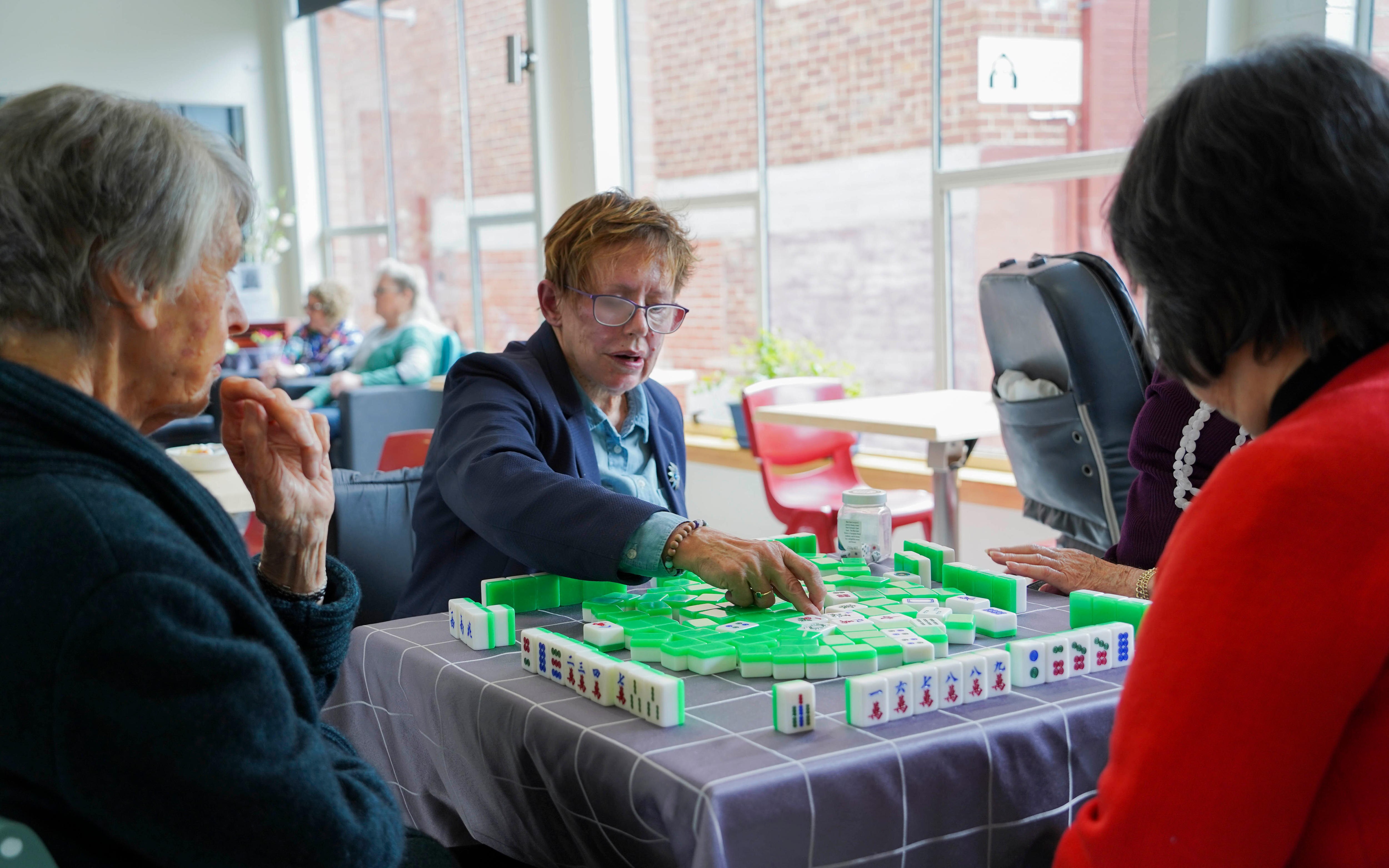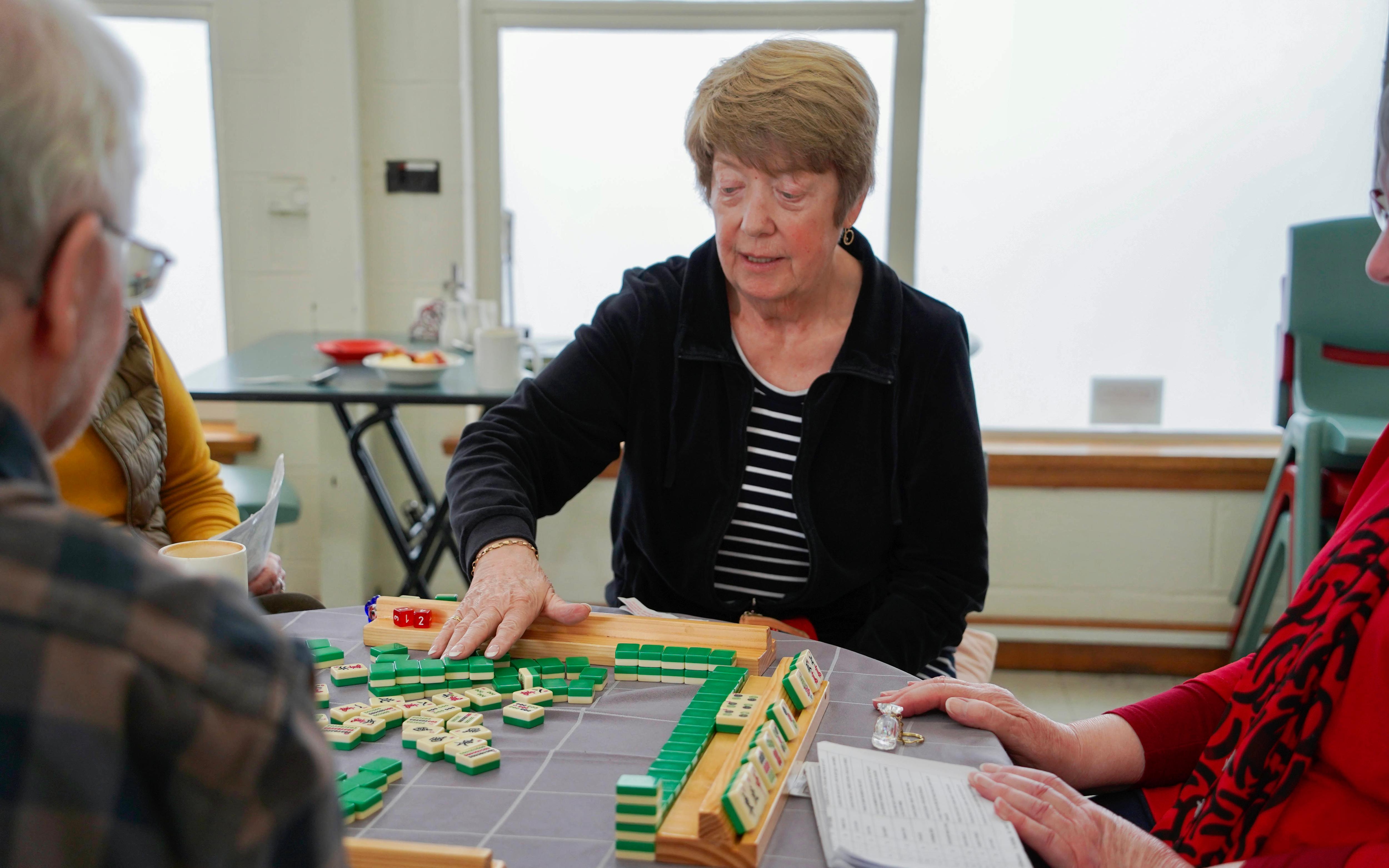 Carolyn Neilson is at Mathers House eating lunch with friends, before they clear the table for mahjong.