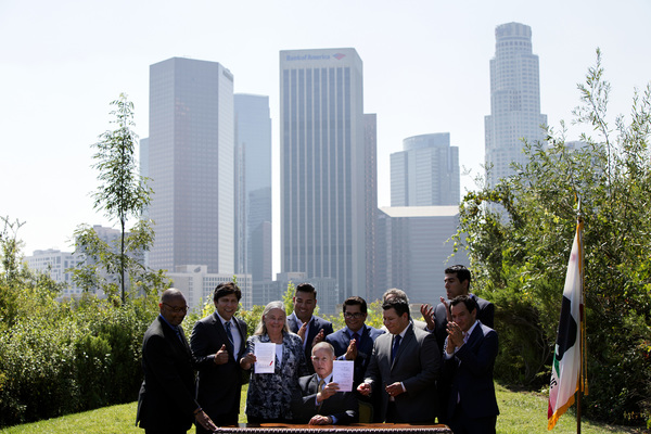 "What we're doing here is far-sighted, as well as far-reaching," Brown said at a signing ceremony at Vista Hermosa Natural Park in downtown Los Angeles. "California is doing something that no other state has done."
