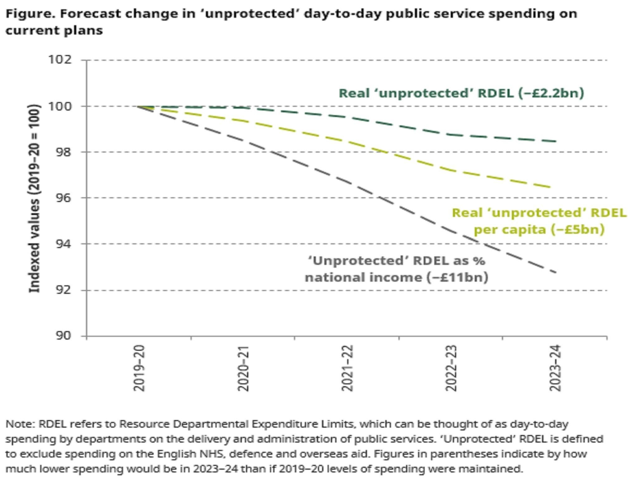 The Chancellor’s current plans imply that these departments are facing annual cuts of 0.4 per cent over the coming years.
