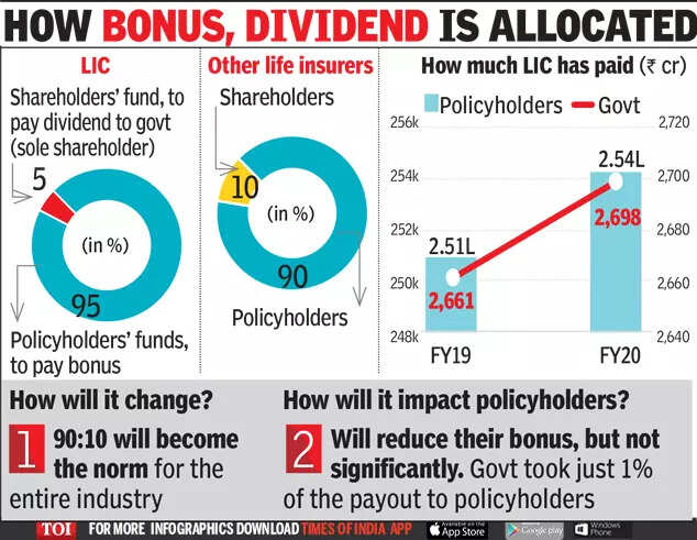 With the IPO planned in the fourth quarter of the current fiscal, the government intends to bring parity to make investment into LIC an equally attractive proposition, sources familiar with the deliberations told TOI. “It’s only natural that investors will expect a similar structure. We are working out the details, along with a few other changes,” a government source said.