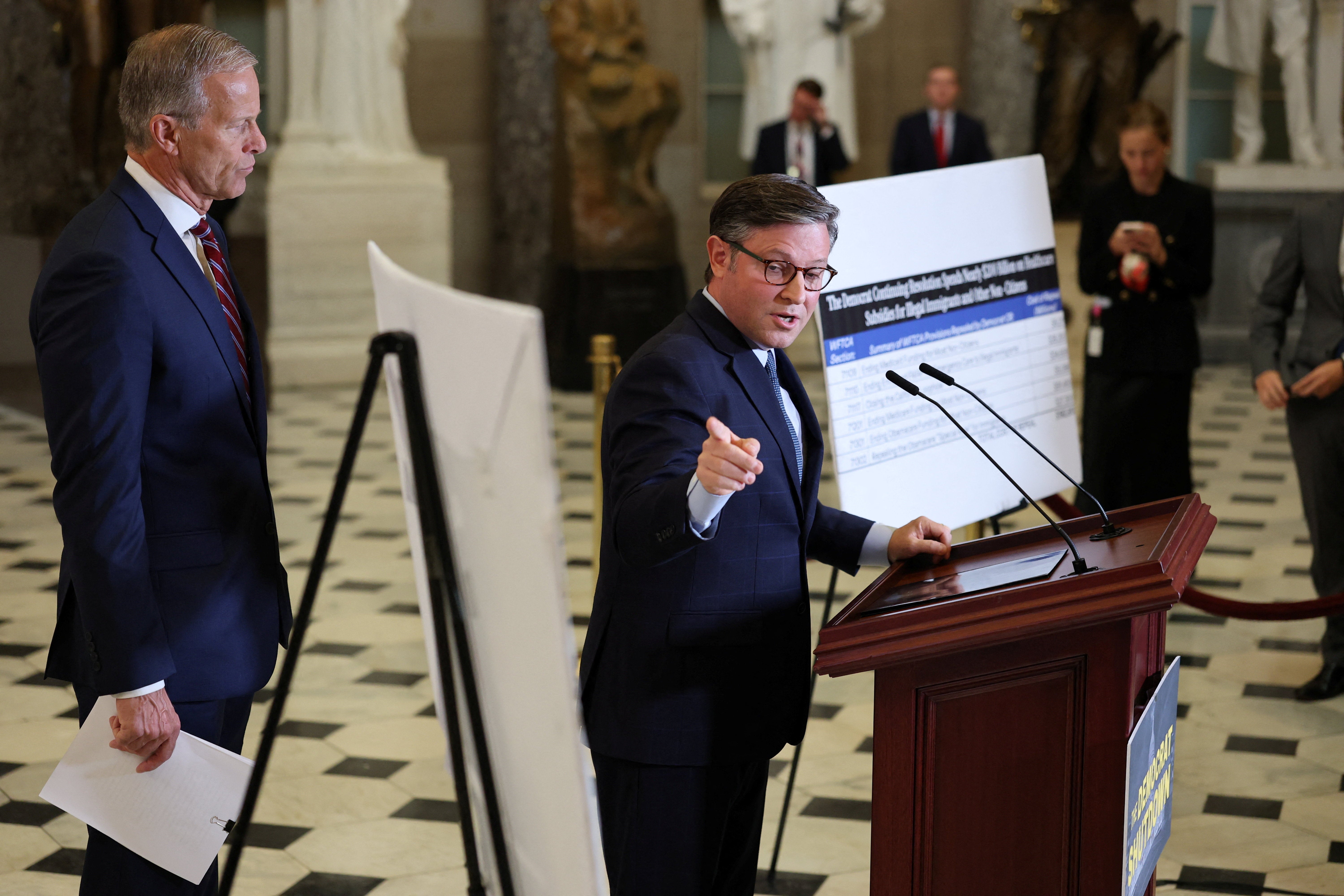 When asked Thursday if his colleagues in the Senate need to work through the weekend, Speaker Mike Johnson replied, “Of course they do.”