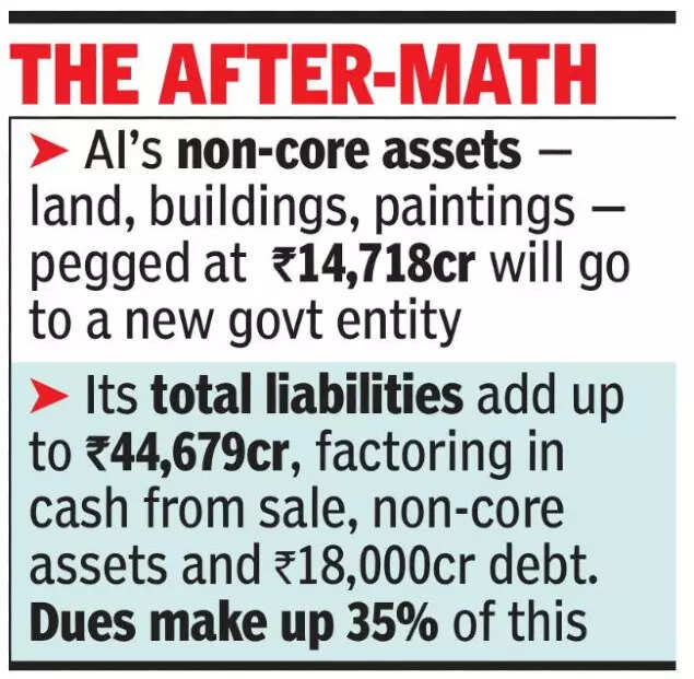 NEW DELHI: The new holding company for Air India, which will take over real estate, paintings and other non-core assets of Air India, will also be saddled with piles of unpaid bills from the hemorrhaging national carrier, in addition to loans from banks.