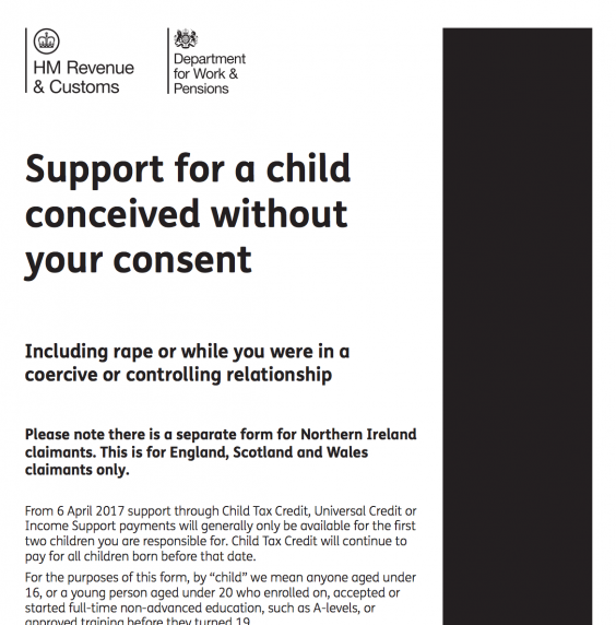 The form is for England, Scotland and Wales claimants; a separate form is expected to be drawn up for Northern Ireland claimants. It will have to be filled in by a rape victim in addition to the usual tax credit application form.
