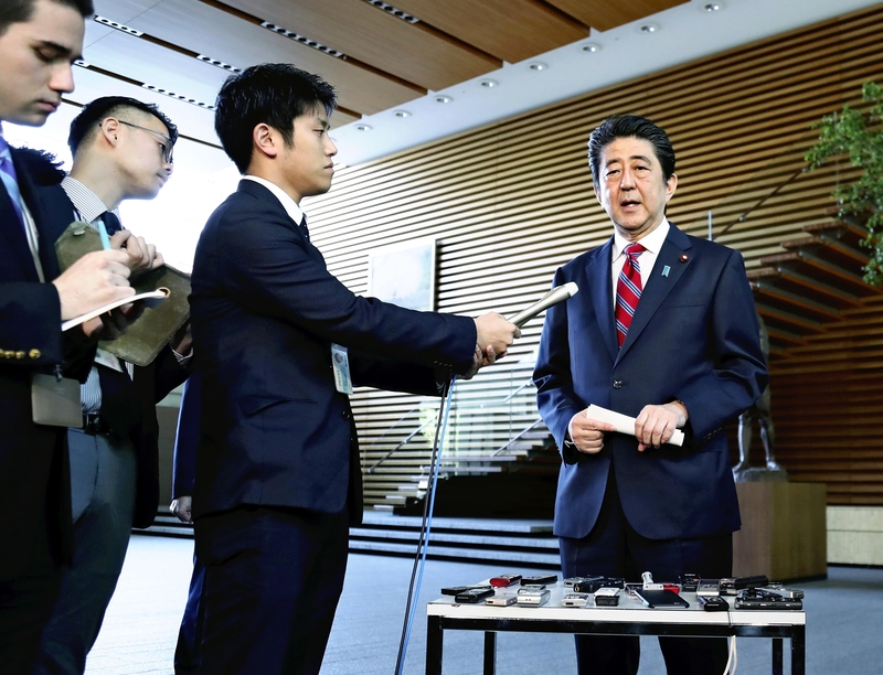 Abe met with Suh Hoon, chief of South Korea's National Intelligence Service, on Sunday at the Prime Minister's Office. "I'm glad that an inter-Korean summit ended successfully based on the direction of action decided by Japan, the United States and South Korea," Abe said to Suh.