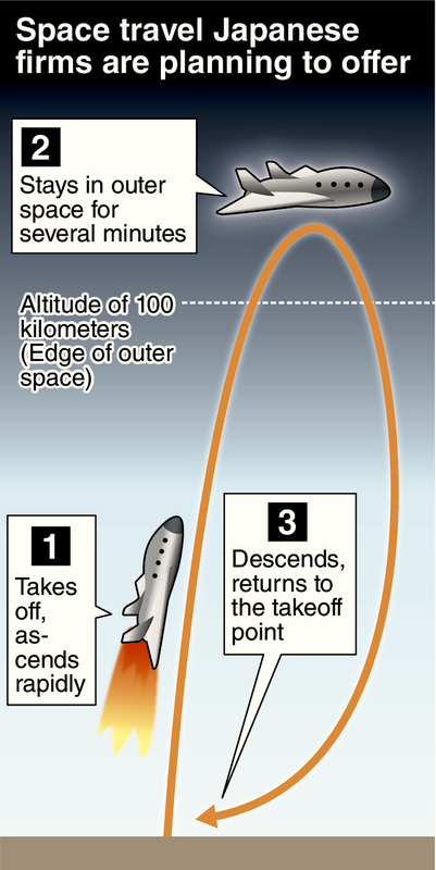 In the project, travelers will reach outer space at an altitude of 100 kilometers or higher by a small airplane-like craft and they will experience weightlessness for several minutes before returning to Earth. The government established a council to promote public-private cooperation for the project and its first meeting was held Wednesday.