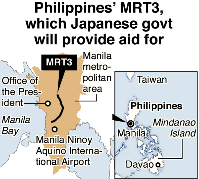 The two governments are aiming to cooperate to rebuild the 17-kilometer-long MRT3 line, which was opened in its entirety in 2000 in the Manila metropolitan area.