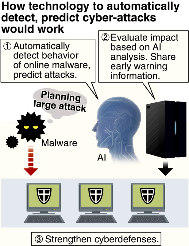 The government will undertake a research and development project to use artificial intelligence to automatically detect signs of cyber-attacks and evaluate their potential impact, The Yomiuri Shimbun has learned.