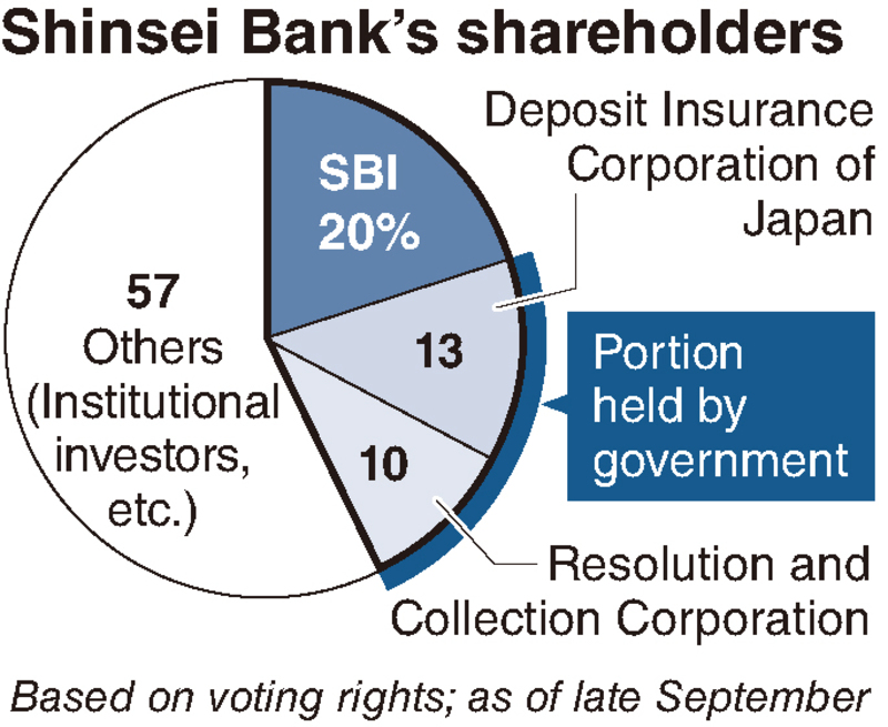 The government owns a stake exceeding 20% through the government-affiliated Deposit Insurance Corporation of Japan and its subsidiary Resolution and Collection Corporation. The combined stake held by SBI and the government exceeds 40%, so it is highly likely the bank's attempt will be rejected at the shareholders meeting.