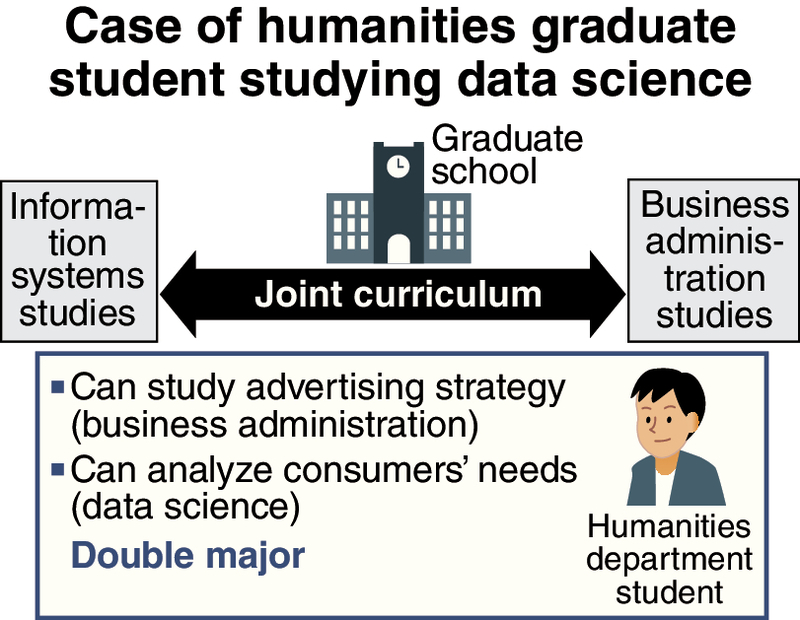 The education ministry will from fiscal 2022 provide support for the creation of a curriculum that allows graduate students in humanities courses to also study data science, a move aimed at raising the global competitiveness of Japan and Japanese universities.