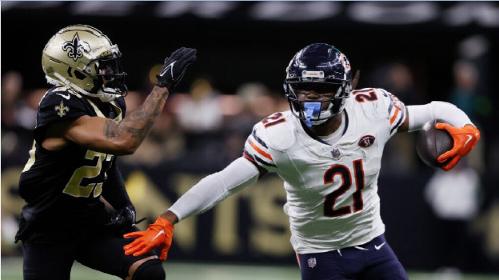 Cole Kmet (six catches, 55 yards) had two touchdowns, including a nifty catch for an 18-yard score. Darnell Mooney (five catches, 82 yards) had his best game of the season, including a 38-yard gain that was all run-after-catch. DJ Moore (three catches, 44 yards) lost a fumble after a 13-yard reception that led to a Saints field goal.