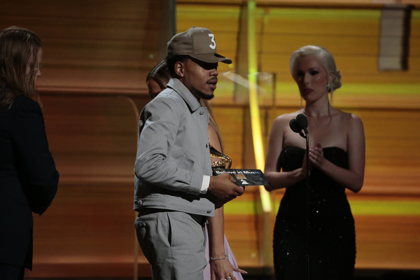 The 23-year-old artist's first Grammy, for best rap performance ("No Problem"), broke an invisible barrier. Chance has never sold a single piece of recorded music, instead making his music available for free streaming online while developing a worldwide following. Recordings that were not commercially sold were previously banned from Grammy consideration, but the academy relaxed its eligibility standards last year, paving the way for Chance's victory.