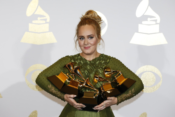 LOS ANGELES � Adele tearfully thanked Beyonce as the British singer took home Grammy Awards for both Album of the Year and Record of the Year for "25" Sunday.