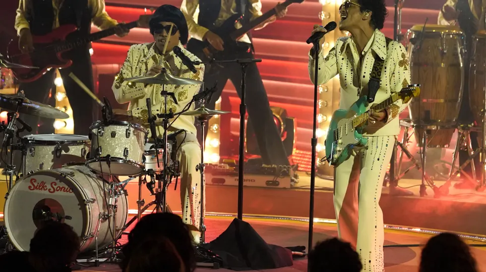 Bruno Mars and Anderson .Paak were exuberant as they accepted the record honor toward the end of the ceremony. The win puts Mars in historic company again: He becomes the only artist along with Paul Simon to take home the award three times.