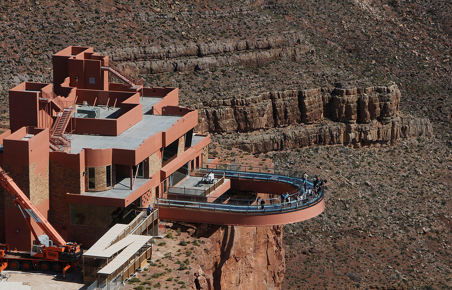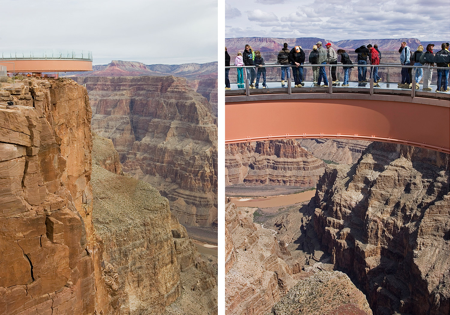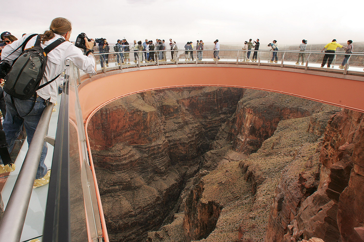But the most dramatic viewing experience can be found at the Grand Canyon Skywalk, which gives intrepid visitors the sensation of hovering in mid-air. First opened in 2007, the literally high-tech lookout features a cantilevered, horseshoe-shaped walkway with a transparent glass floor that juts out 21 metres from the canyon’s rim. Standing on the see-through deck gives “sky-walkers” a vertigo-inducing 1.5 km-view—straight down. But no worries, the steel-framed platform is designed to support the equivalent weight of a dozen fully loaded jumbo jets.