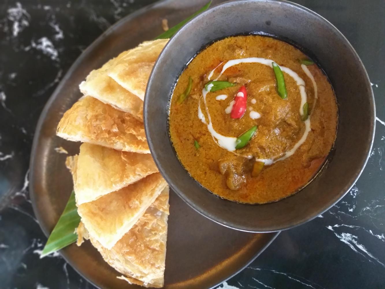 Bathed in the delicious curry were sizeable slices of beef shank, slow-cooked until tender yet still boasting a marbling line of gelatinous connective collagen, all complemented by flaky golden pieces of pan-fried roti bread.