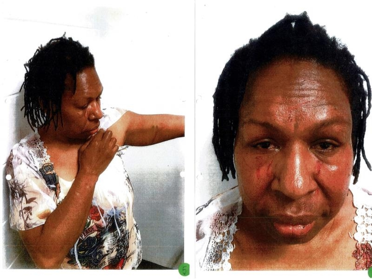 She said she had been pulled out of her car by her hair, been bitten herself and had a piece of wood swung at her.