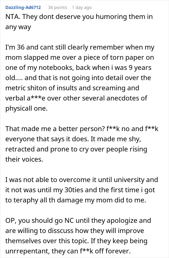 The dad elaborated more on his relationship with his parents in the comments: “They don’t know much about developing healthy relationships”