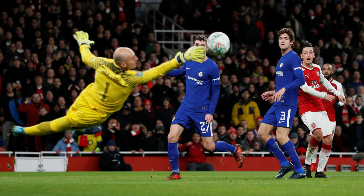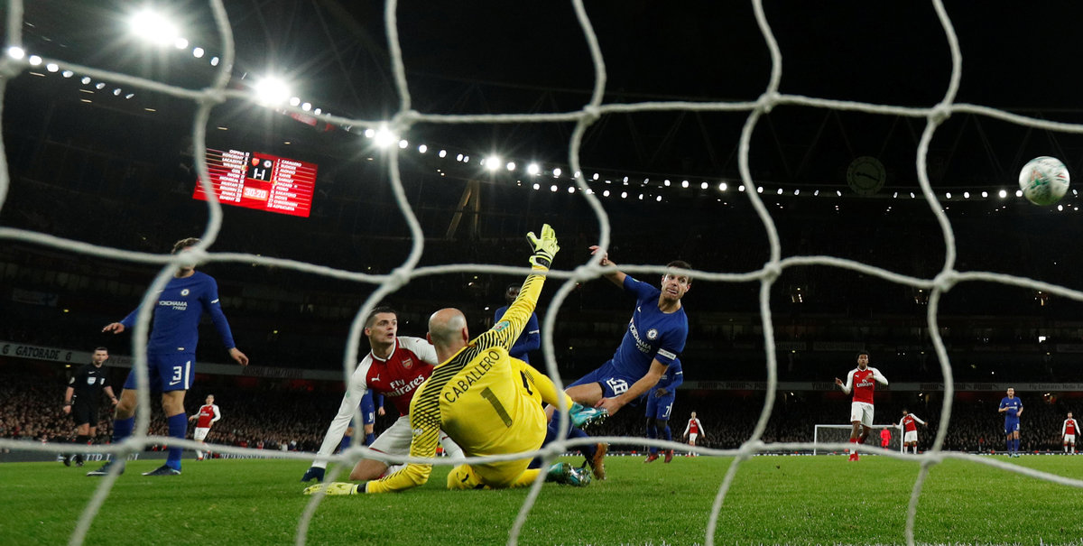 From that moment on Chelsea barely created a chance as Arsenal stayed resolute at the back and sharp on the counter, with the best opening falling to Alex Iwobi whose effort from 15 metres was saved by the legs of Caballero.