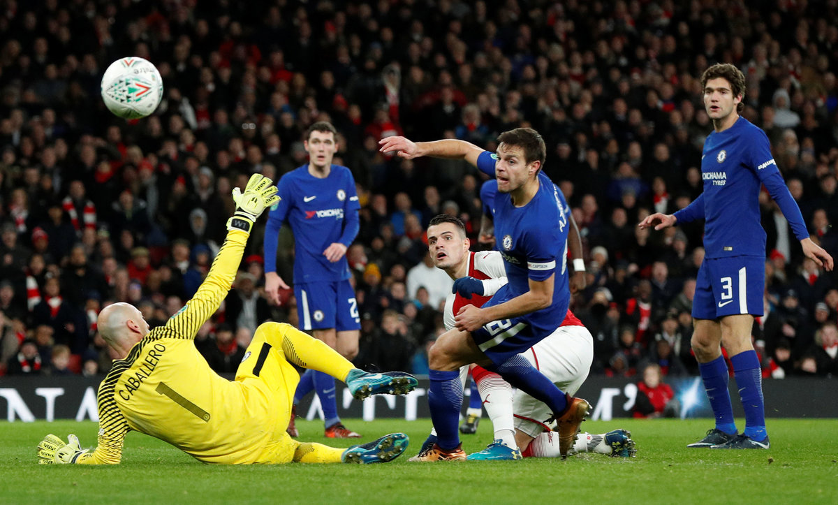 LONDON (Reuters) - Arsenal fought back from a goal down against old foes Chelsea to reach the League Cup final as Granit Xhaka poked home to complete a 2-1 second-leg win on Wednesday that set up a Wembley showdown with Manchester City.