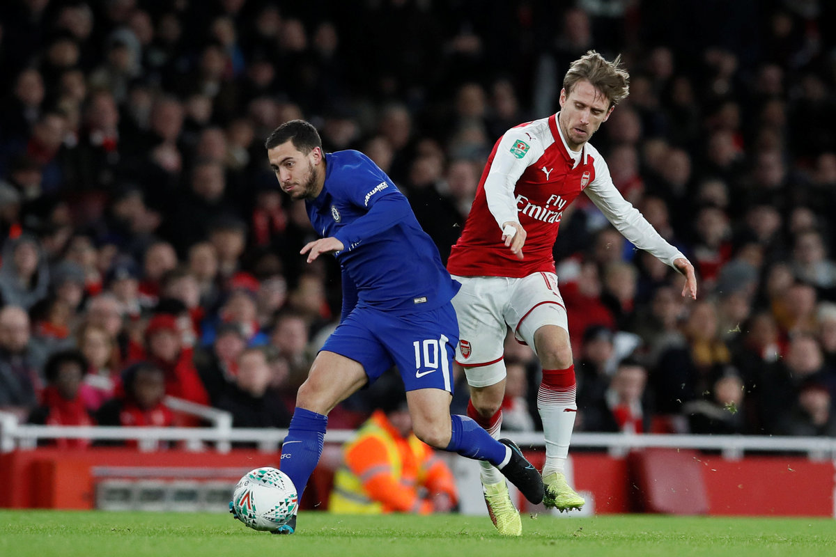 Nothing separated the sides after the semi-final's first leg at Stamford Bridge ended goalless two weeks ago, but the stalemate was swiftly broken as Chelsea took the lead through Eden Hazard after seven minutes at the Emirates Stadium.