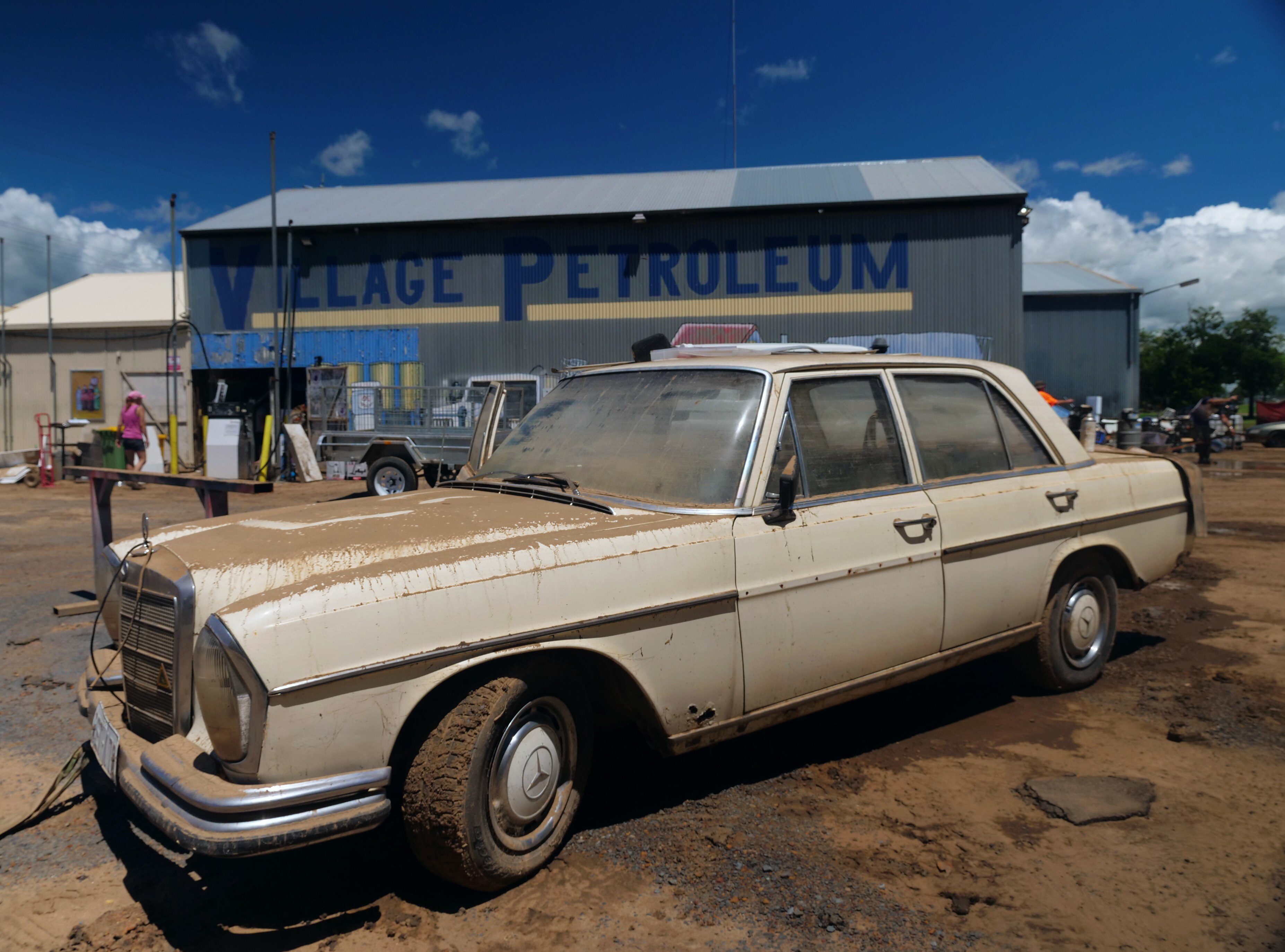 The scene is similar at the fuel station next door, where locals are throwing flood-damaged items into a box trailer.