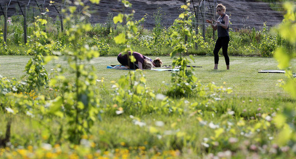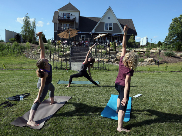 Yoga & Wine started shortly after owner Matt Snyder opened the winery in November. It was a big hit pretty much from the start, he said, so the winery has added Yoga & Mimosa on Saturday mornings.
