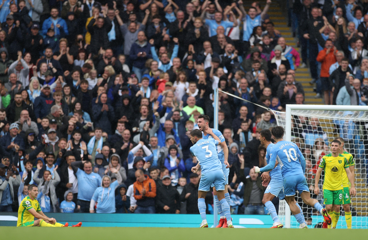 Grealish bundled in a low cross by Gabriel Jesus in the 22nd minute to double City's lead after they had taken the lead in the seventh minute with a Tim Krul own goal.