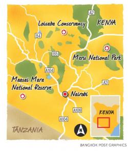 We flew for 50 minutes and landed at Kinna Airstrip. Our safari journey, arranged by SkySafari by Elewana and Kenya Airways, would go from Meru National Park to Loisaba Conservancy and end in Maasai Mara National Reserve.
