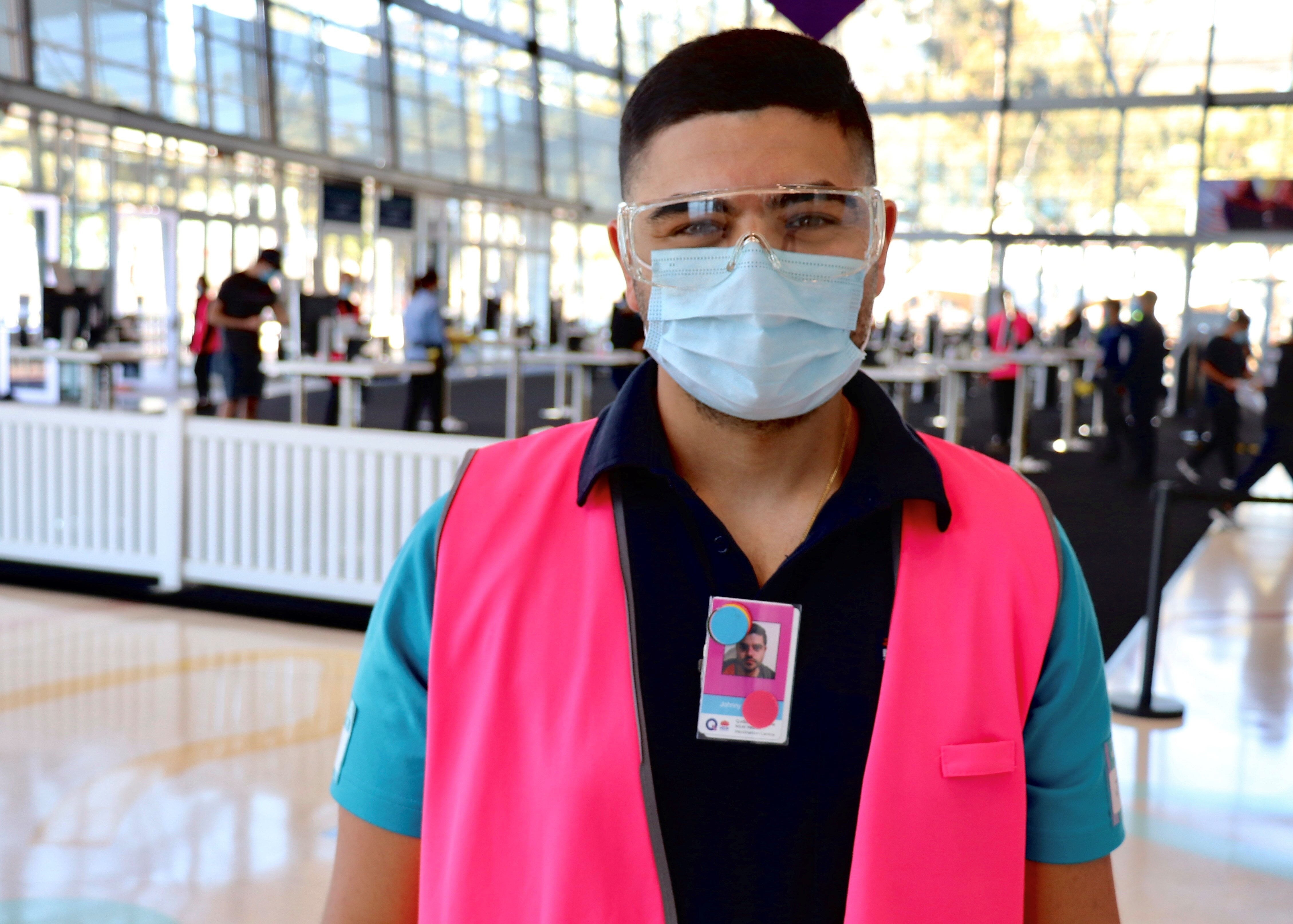 Western Sydney University student Johnny Mardini is one of hundreds of students helping the state inch closer to the 70 per cent target when more freedoms will be allowed.