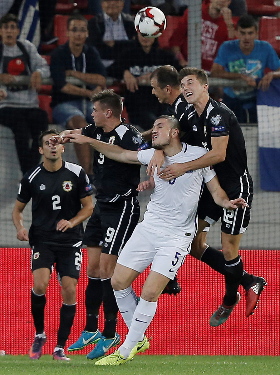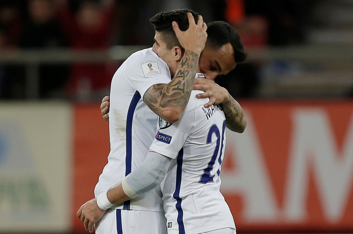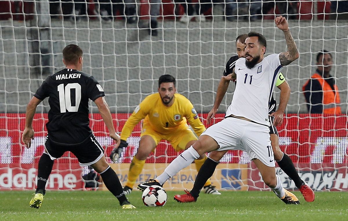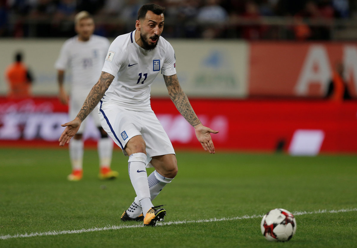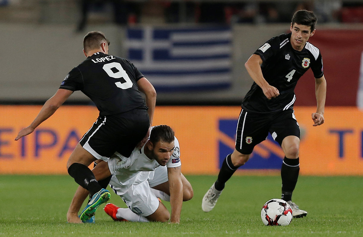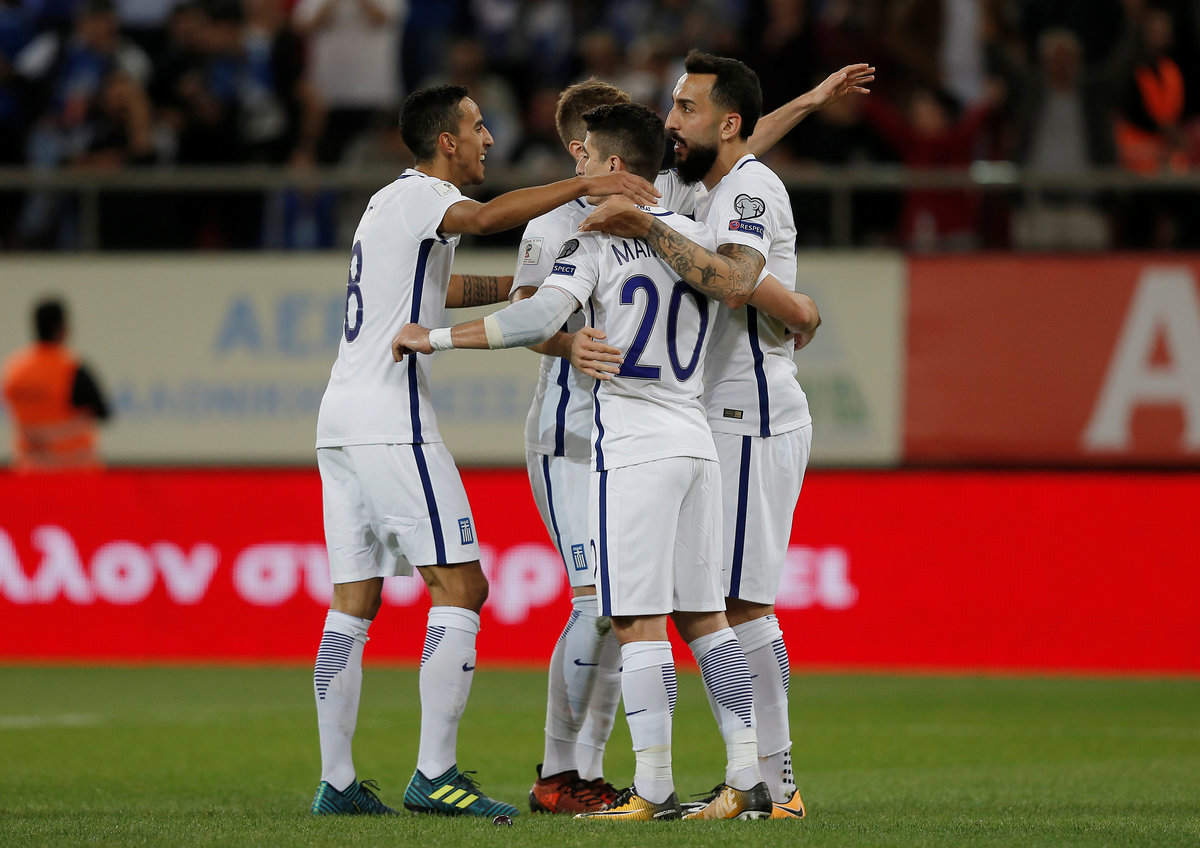 Soccer Football - 2018 World Cup Qualifications - Europe - Greece vs Gibraltar - Karaiskakis Stadium, Piraeus, Greece - October 10, 2017 Greece's Kyriakos Papadopoulos in action with Gibraltar’s Jamie Coombes REUTERS/Alkis KonstantinidisSoccer Football - 2018 World Cup Qualifications - Europe - Greece vs Gibraltar - Karaiskakis Stadium, Piraeus, Greece - October 10, 2017 Greece players applaud fans after the match REUTERS/Alkis KonstantinidisSoccer Football - 2018 World Cup Qualifications - Europe - Greece vs Gibraltar - Karaiskakis Stadium, Piraeus, Greece - October 10, 2017 Greece's Kostas Mitroglou celebrates scoring their second goal with team mates REUTERS/Alkis KonstantinidisSoccer Football - 2018 World Cup Qualifications - Europe - Greece vs Gibraltar - Karaiskakis Stadium, Piraeus, Greece - October 10, 2017 Greece's Vasilis Torosidis scores their first goal REUTERS/Alkis KonstantinidisSoccer Football - 2018 World Cup Qualifications - Europe - Greece vs Gibraltar - Karaiskakis Stadium, Piraeus, Greece - October 10, 2017 Greece's Panagiotis Tachtsidis in action with Gibraltar’s Anthony Bardon and Jeremy Lopez REUTERS/Alkis KonstantinidisSoccer Football - 2018 World Cup Qualifications - Europe - Greece vs Gibraltar - Karaiskakis Stadium, Piraeus, Greece - October 10, 2017 Greece's Vasilis Torosidis celebrates scoring their first goal with team mates REUTERS/Alkis KonstantinidisSoccer Football - 2018 World Cup Qualifications - Europe - Greece vs Gibraltar - Karaiskakis Stadium, Piraeus, Greece - October 10, 2017 Greece's Kyriakos Papadopoulos in action with Gibraltar’s Jamie Coombes REUTERS/Alkis KonstantinidisSoccer Football - 2018 World Cup Qualifications - Europe - Greece vs Gibraltar - Karaiskakis Stadium, Piraeus, Greece - October 10, 2017 Greece's Kyriakos Papadopoulos in action with Gibraltar’s Jayce Mascarenhas-Olivero and Jeremy Lopez REUTERS/Alkis KonstantinidisSoccer Football - 2018 World Cup Qualifications - Europe - Greece vs Gibraltar - Karaiskakis Stadium, Piraeus, Greece - October 10, 2017 Greece team group before the match REUTERS/Alkis KonstantinidisSoccer Football - 2018 World Cup Qualifications - Europe - Greece vs Gibraltar - Karaiskakis Stadium, Piraeus, Greece - October 10, 2017 Gibraltar players line up during the national anthems before the match REUTERS/Alkis Konstantinidis