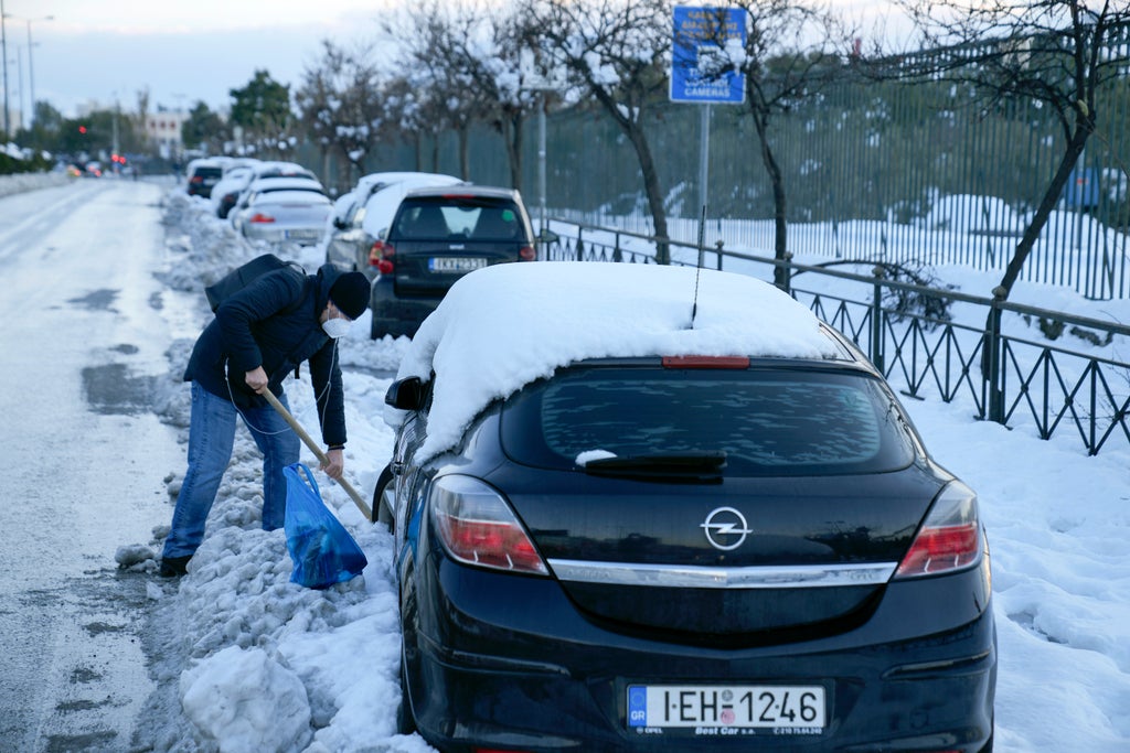 Army and municipal crews removed hundreds of vehicles Wednesday that had been stranded in snow for three days along a tollway linking Athens to the capital’s international airport, as authorities struggled to clear blocked roads and restore power to blacked out parts of the city.