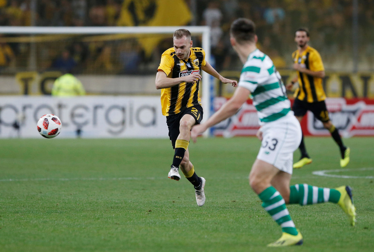 Rodrigo Galo swept in a low cross from the right and Marko Livaja headed in the second for AEK before Scott Sinclair pulled one back for Celtic to set up a dramatic finish.