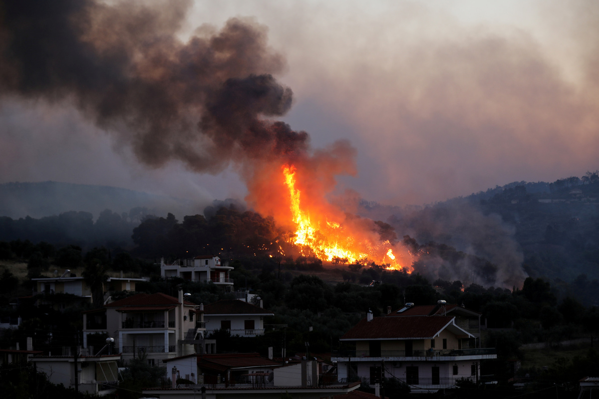 Overnight the blaze moved near the villages of Galataki and Agios Ioannis, with thick smoke clouding the area. The Greek fire brigade chief was still in the area to coordinate efforts, officials said.