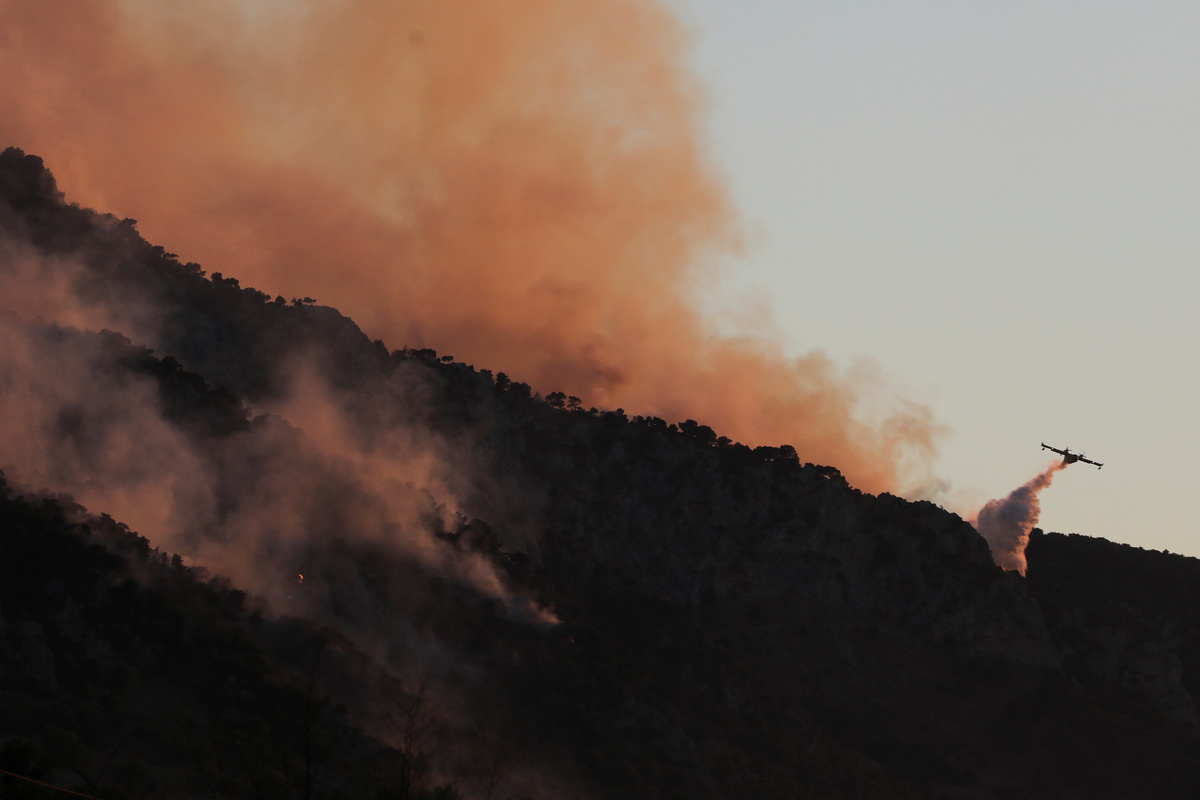 Thick smoke billowed above treetops licked by flames as more than 236 firefighters tackled the blaze, assisted by four helicopters, eight planes municipal staff and volunteers.