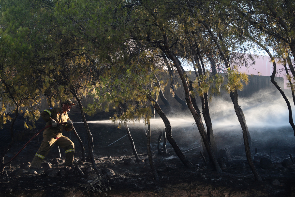 Authorities said they had been forced to evacuate a residential settlement as the blaze, burning through pine trees, came close to a military camp where explosives were stored.