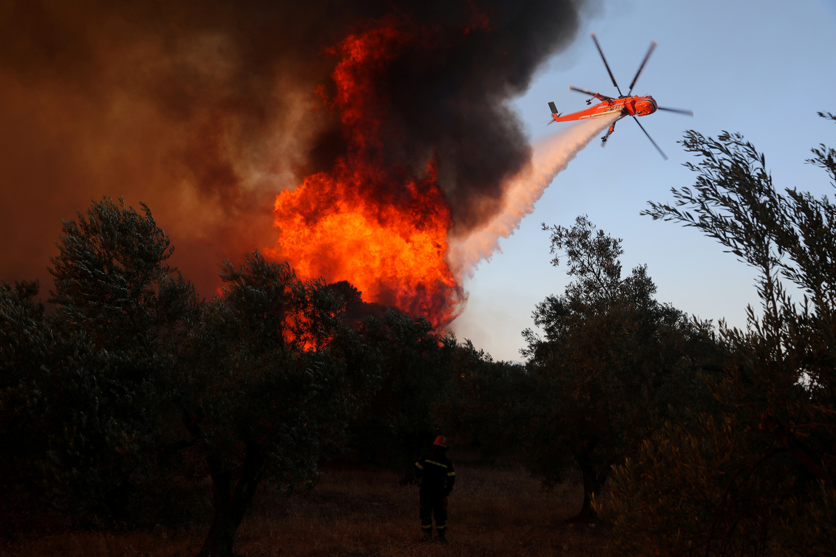 More than 70 firefighters were battling the blaze, assisted by five helicopters and two planes, with volunteers also helping. Late in the evening, reinforcements arrived from northern Greece. Winds had dropped but the fire was still active on several fronts, witnesses said.
