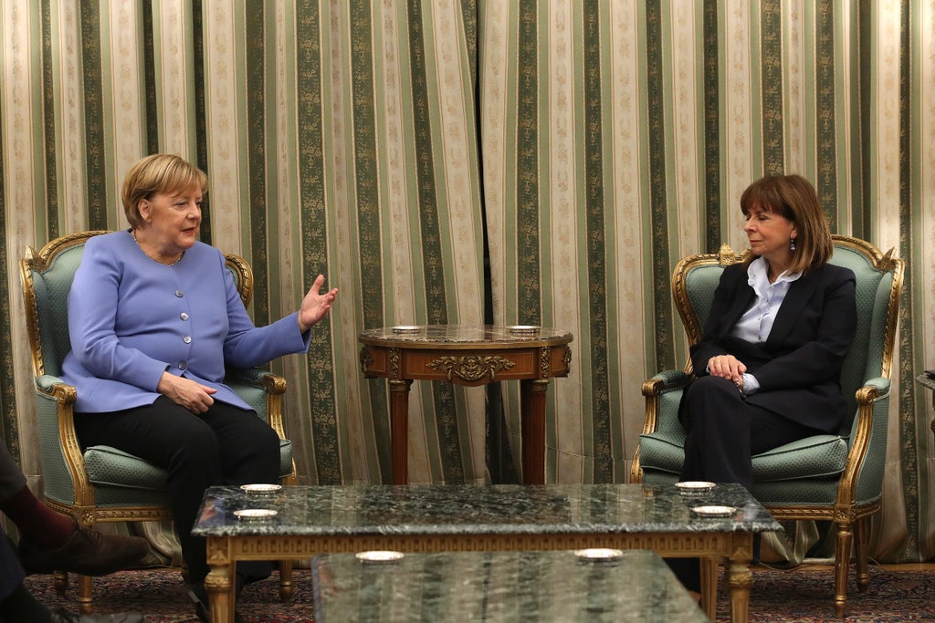 Katerina Sakellaropoulou was Merkel’s first official meeting during her visit to the country whose financial crisis marked much of her 16-year tenure and Germany’s relationship with Europe.