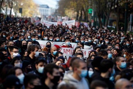 On Tuesday, the government announced a ban on protests attended by more than 100 people until Feb. 1, as part of measures to contain the spread of the coronavirus. Violations are punishable by fines of up to 3,000 euros ($3,650) for individuals organizing rallies or demonstrations, and 5,000 euros (about $6,000) for groups or organizations.
