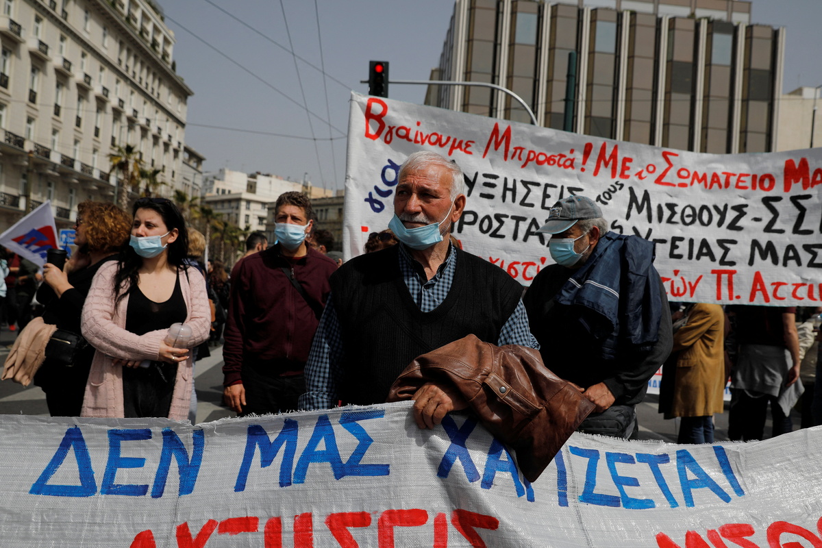 "Recently, our salaries – for those of us who have jobs – last for only half a month's worth of expenses," said Christos Katsikas, a 60-year-old school teacher.