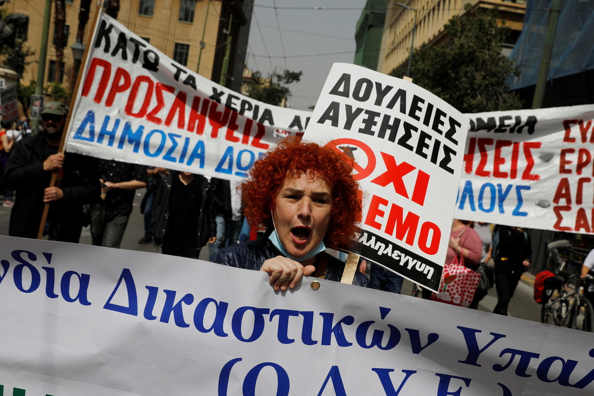ATHENS (Reuters) -Thousands protested in Athens on Wednesday during a day-long nationwide strike over what workers call a "deepening crisis" of rising prices and squeezed incomes, disrupting transport, ferries, schools and public hospitals.
