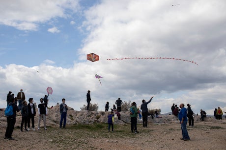 “I wake up every day and … cross myself and thank God for what we have, because unfortunately there are many fellow human beings who have nothing,” said Eleftheria Zissi, who was also flying a kite on the hill. “For everyone enduring the pandemic, this is making us all think about all the positive things in our lives.”