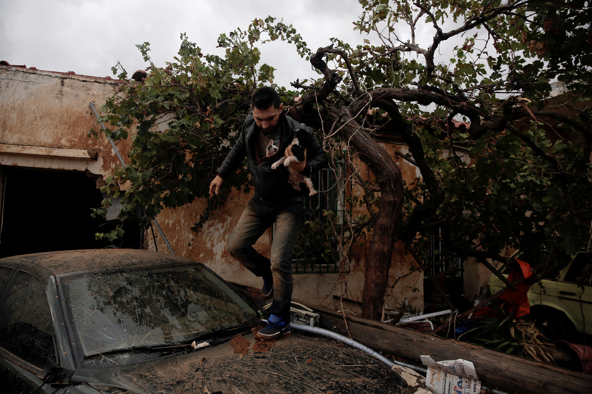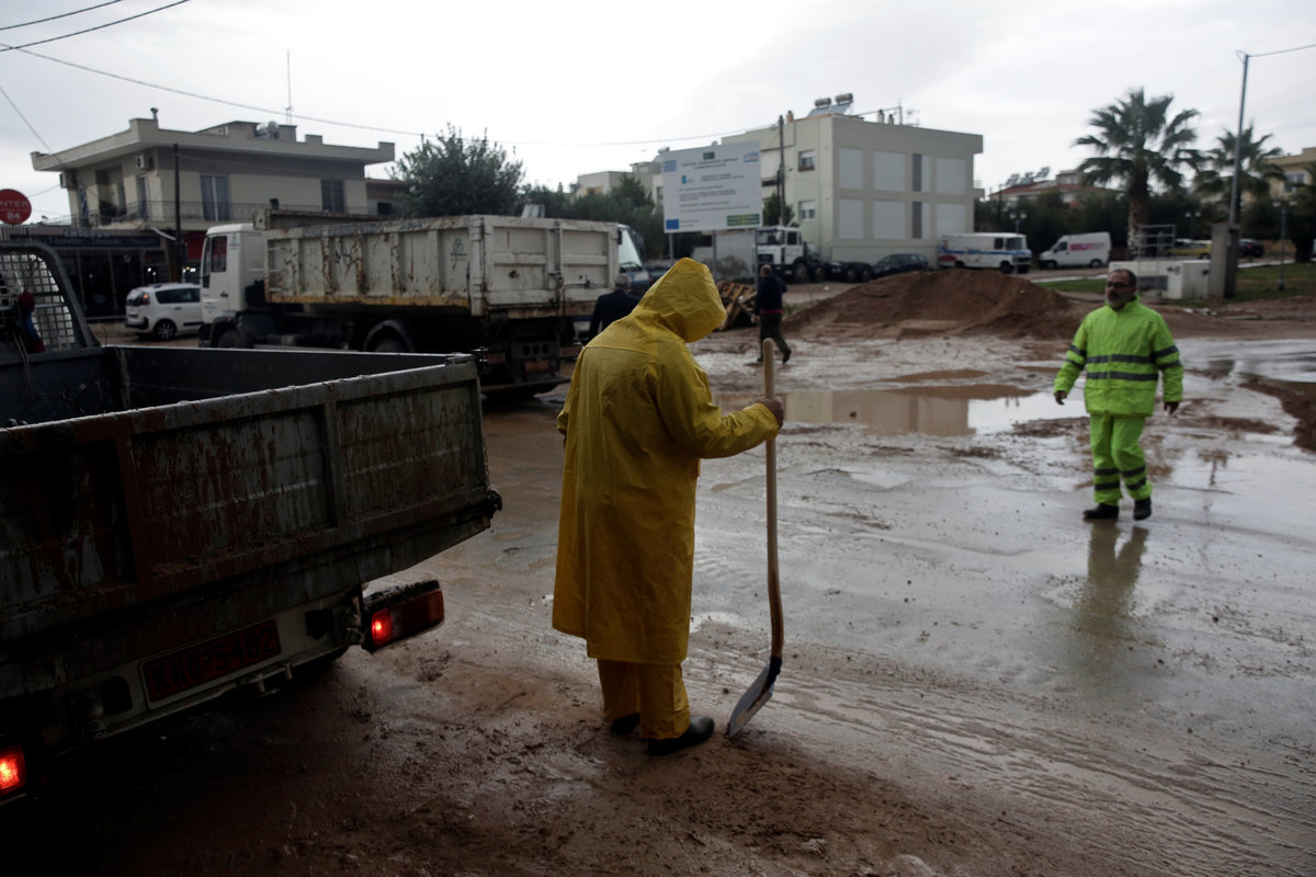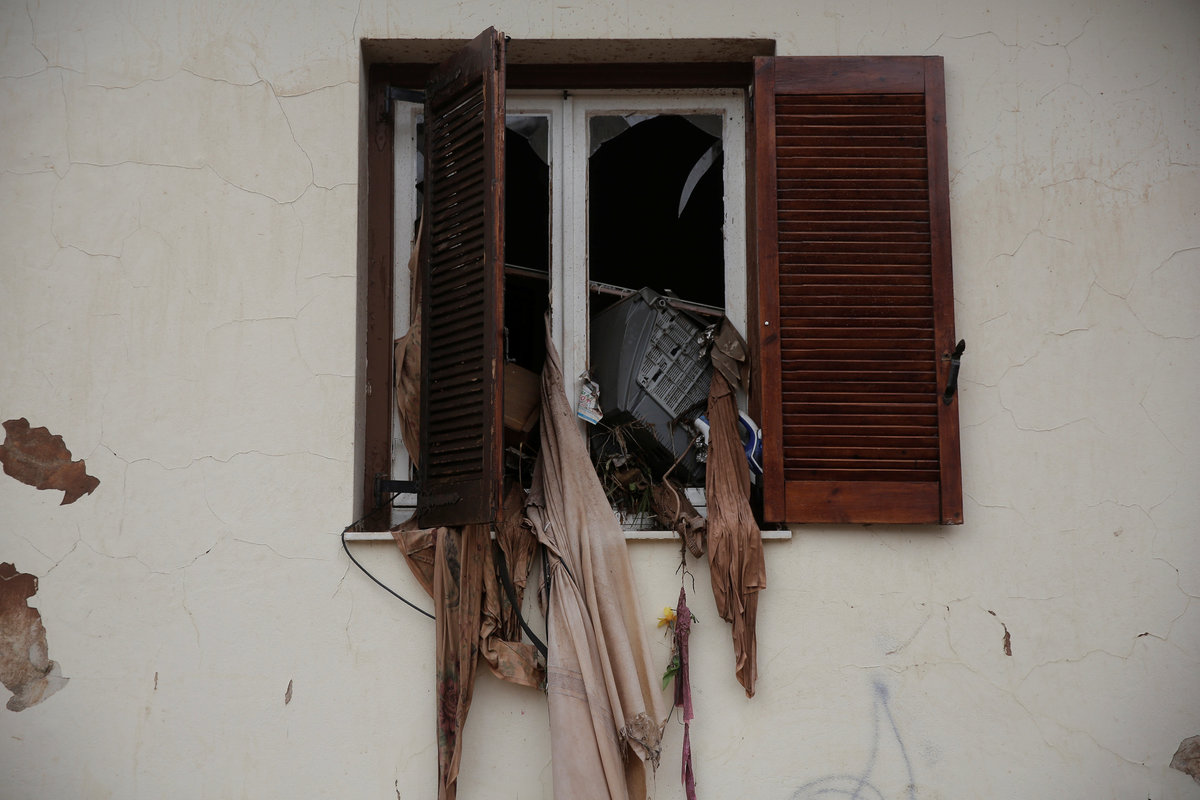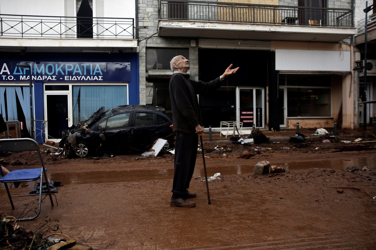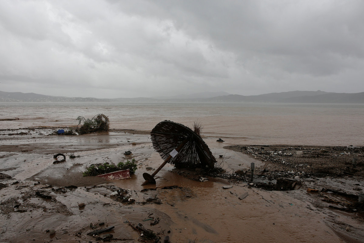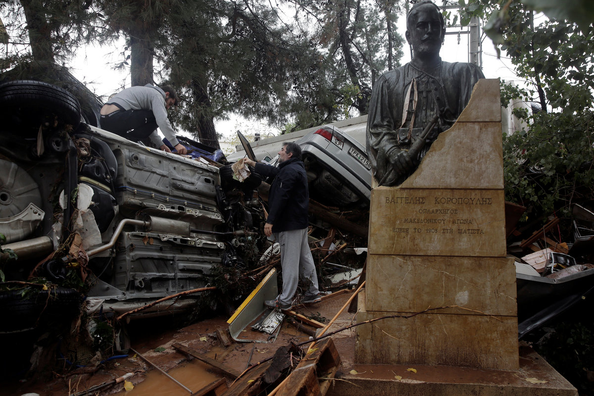 A local looks at debris piled up under her balcony following heavy rainfall in the town of Mandra, Greece, November 15, 2017. REUTERS/Alkis KonstantinidisDestroyed cars and debris are piled up among houses, following flash floods which hit areas west of Athens on November 15 killing at least 15 people, in Mandra, Greece, November 16, 2017. REUTERS/Alkis KonstantinidisA poster depicting a leader of Greek conservative New Democracy party Kyriakos Mitsotakis is seen on the wall as mud covers the floor of the party's local office, following flash floods which hit areas west of Athens on November 15 killing at least 15 people, in Mandra, Greece, November 16, 2017. REUTERS/Alkis KonstantinidisPeople walk past destroyed cars and shops, following flash floods which hit areas west of Athens on November 15 killing at least 15 people, in Mandra, Greece, November 16, 2017. REUTERS/Alkis KonstantinidisLocals wear plastic bags to protect from mud as they walk next to destroyed cars, following flash floods which hit areas west of Athens on November 15 killing at least 15 people, in Mandra, Greece, November 16, 2017. REUTERS/Alkis KonstantinidisA local looks on a blocked street behind debris following flash floods which hit areas west of Athens on November 15 killing at least 15 people, in Mandra, Greece, November 16, 2017. REUTERS/Alkis KonstantinidisA destroyed car is stuck at the entrance of a house following flash floods which hit areas west of Athens on November 15 killing at least 15 people, in Mandra, Greece, November 16, 2017. REUTERS/Alkis KonstantinidisA man and his son look for the documents of their destroyed car, following flash floods which hit areas west of Athens on November 15 killing at least 15 people, in Mandra, Greece, November 16, 2017. REUTERS/Alkis KonstantinidisMud covers the floor of the local offices of Greek conservative New Democracy party, as portraits of all leaders of the party and a Greek national flag hang on the wall, following flash floods which hit areas west of Athens on November 15 killing at least 15 people, in Mandra, Greece, November 16, 2017. REUTERS/Alkis KonstantinidisA TV set and curtains are stuck on a destroyed window of a flooded house, following flash floods which hit areas west of Athens on November 15 killing at least 15 people, in Mandra, Greece, November 16, 2017. REUTERS/Alkis KonstantinidisA worker holds a shovel next to a muddy road following flash floods which hit areas west of Athens on November 15 killing at least 15 people, in Nea Peramos, Greece, November 16, 2017. REUTERS/Alkis KonstantinidisMud is seen on the kitchen table in the house of Maria Kriada following flash floods which hit areas west of Athens on November 15 killing at least 15 people, in Nea Peramos, Greece, November 16, 2017. REUTERS/Alkis KonstantinidisA stop sign is seen on a destroyed road following flash floods which hit areas west of Athens on November 15 killing at least 15 people, in Nea Peramos, Greece, November 16, 2017. REUTERS/Alkis KonstantinidisA beach umbrella lies on the muddy seaside following flash floods which hit areas west of Athens on November 15 killing at least 15 people, in Nea Peramos, Greece, November 16, 2017. REUTERS/Alkis KonstantinidisA local, carrying a dog in his jacket, saves a cat that was trapped in a tree, following a heavy rainfall in the town of Mandra, Greece. REUTERS/Alkis KonstantinidisLocals walk among destroyed cars on a muddy street, following flash floods which hit areas west of Athens on November 15 killing at least 15 people, in Mandra, Greece, November 16, 2017. REUTERS/Alkis KonstantinidisMaria Kriada is comforted outside her destroyed house following flash floods which hit areas west of Athens on November 15 killing at least 15 people, in Nea Peramos, Greece, November 16, 2017. REUTERS/Alkis Konstantinidis
