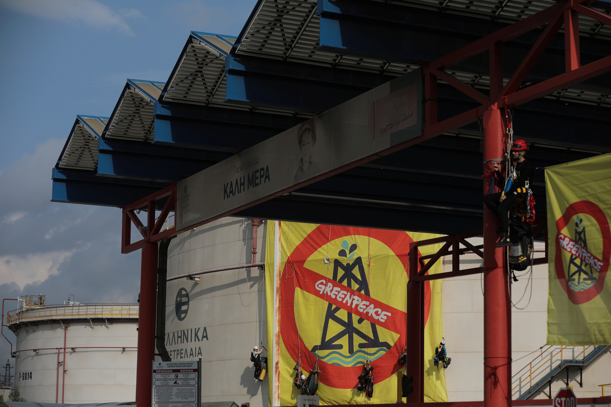 "We want to protest against HELPE's oil and gas drilling plans in Greek seas and land, which are hurting the environment," said Greenpeace campaigner Takis Grigoriou. "People need to know ... this is destructive for the country."
