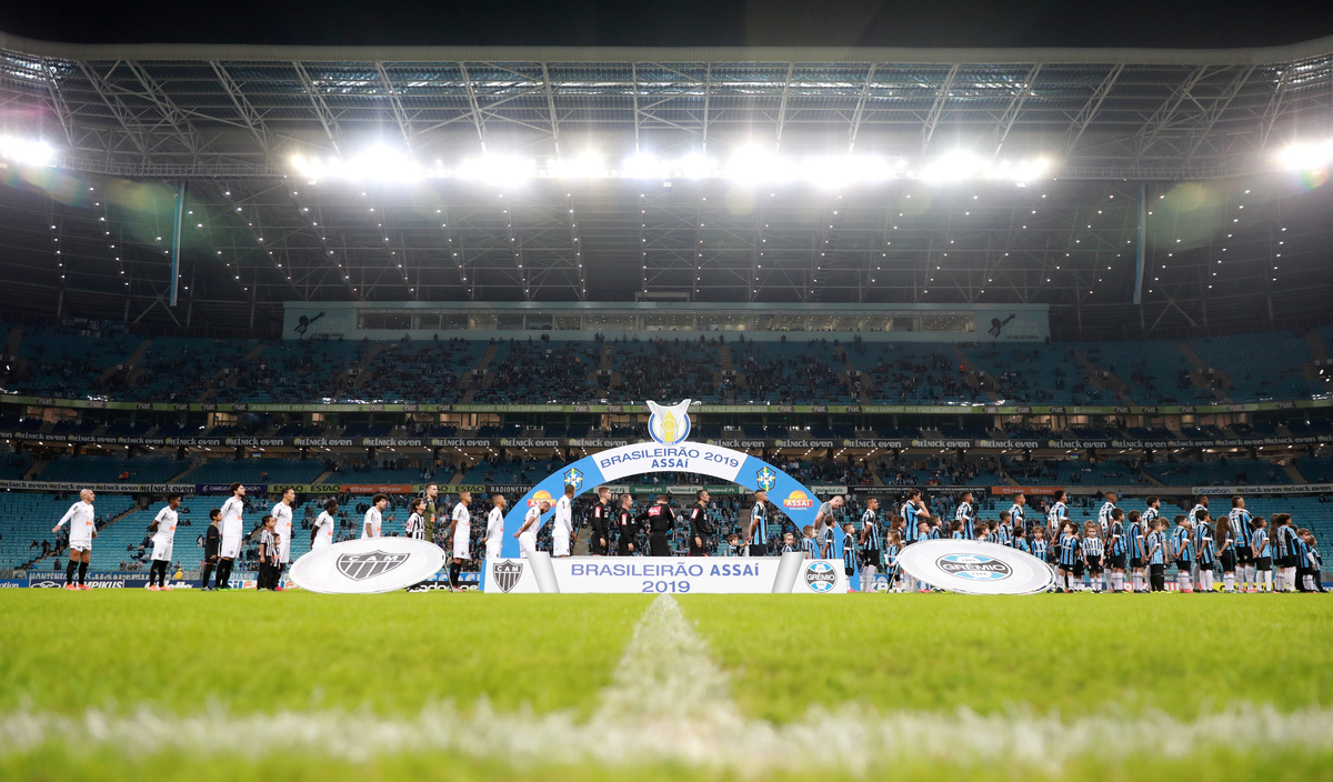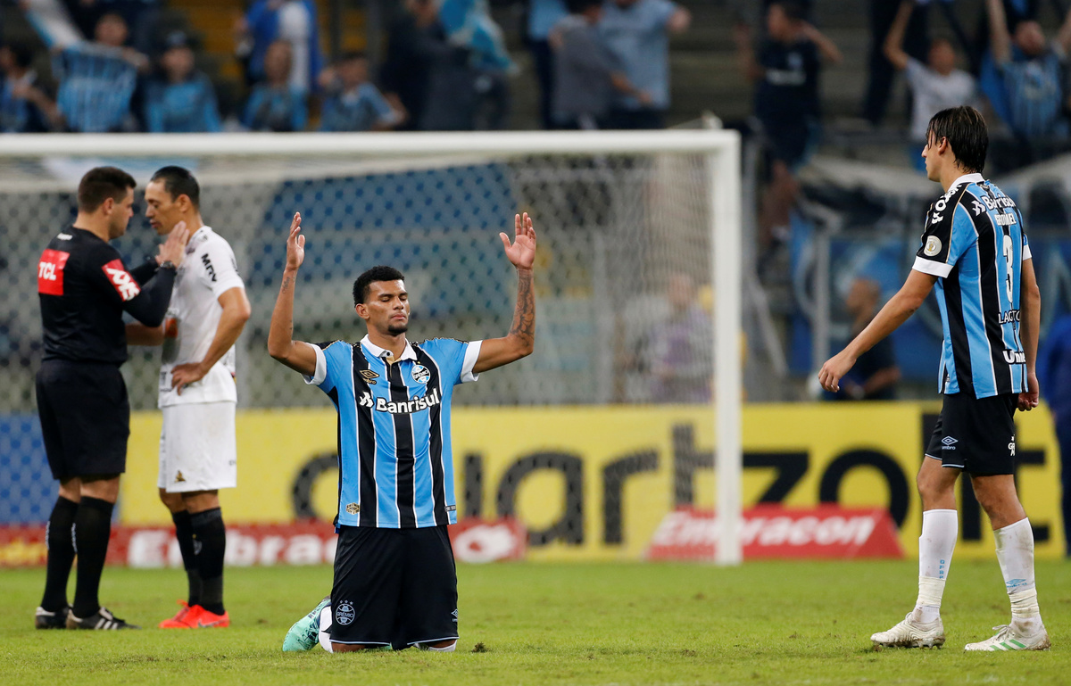 Soccer Football - Brasileiro Championship - Gremio v Atletico Mineiro - Arena do Gremio, Porto Alegre, Brazil - May 25, 2019 Gremio’s Felipe Vizeu celebrates scoring their first goal REUTERS/Diego VaraSoccer Football - Brasileiro Championship - Gremio v Atletico Mineiro - Arena do Gremio, Porto Alegre, Brazil - May 25, 2019 Gremio’s Andre in action with Atletico Mineiro’s Igor Rabello REUTERS/Diego VaraSoccer Football - Brasileiro Championship - Gremio v Atletico Mineiro - Arena do Gremio, Porto Alegre, Brazil - May 25, 2019 Gremio’s Antonio and Pedro Geromel after the match REUTERS/Diego VaraSoccer Football - Brasileiro Championship - Gremio v Atletico Mineiro - Arena do Gremio, Porto Alegre, Brazil - May 25, 2019 Gremio’s Diego Tardelli in action with Atletico Mineiro’s Patric REUTERS/Diego VaraSoccer Football - Brasileiro Championship - Gremio v Atletico Mineiro - Arena do Gremio, Porto Alegre, Brazil - May 25, 2019 Teams line up during the national anthem before the match REUTERS/Diego Vara