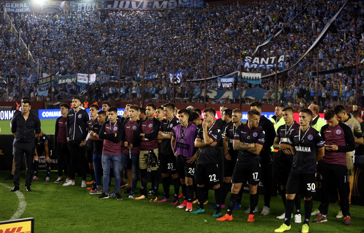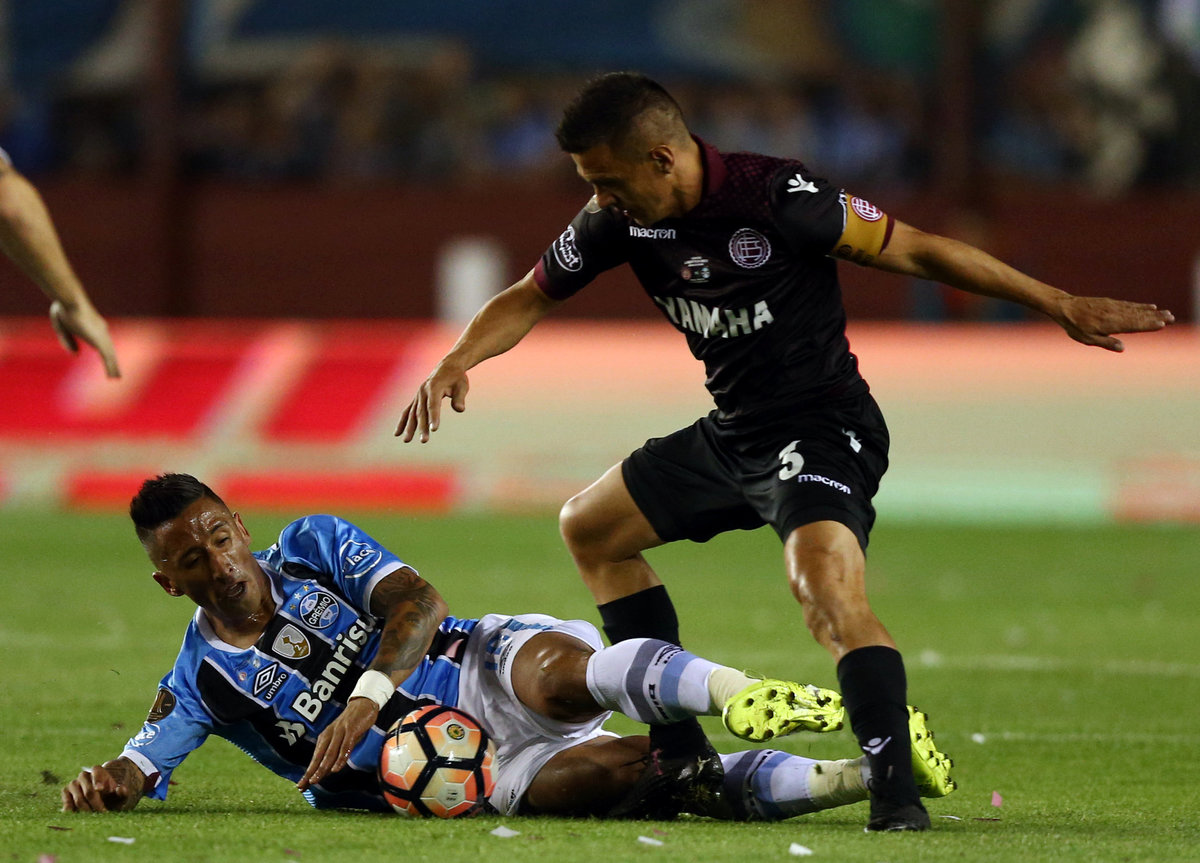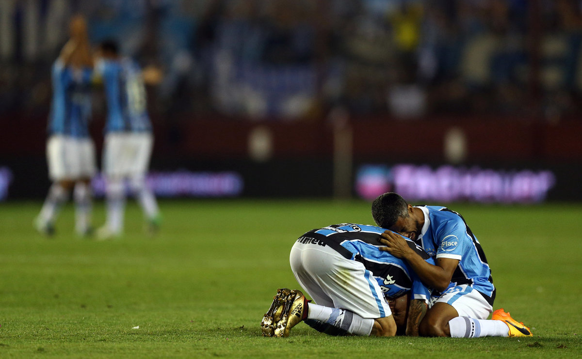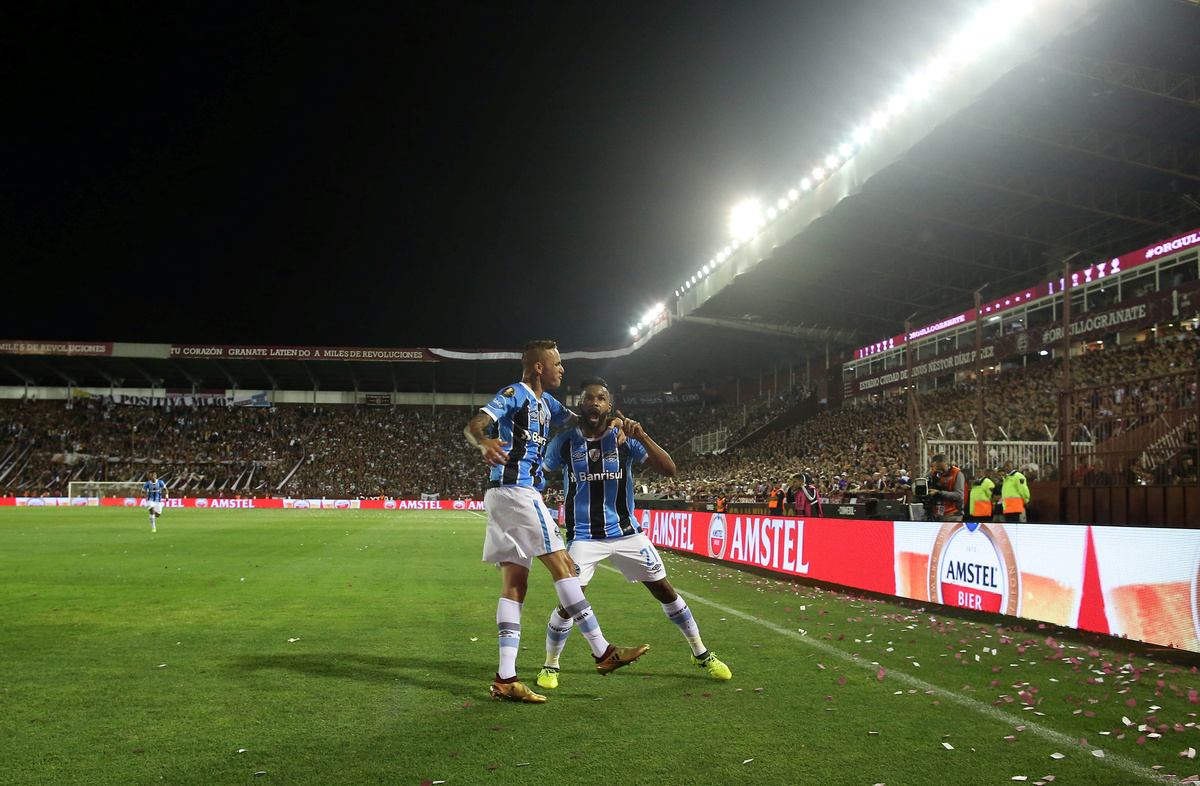 Soccer Football - Argentina's Lanus v Brazil's Gremio - Copa Libertadores Final - Ciudad de Lanus stadium, Lanus, Argentina - November 29, 2017. Gremio's Fernandinho celebrates after scoring. REUTERS/Agustin MarcarianSoccer Football - Copa Libertadores Final - Argentina’s Lanus v Gremio - Ciudad de Lanus stadium, Lanus, Argentina - November 29, 2017 - Gremio's Lucas Barrios and Lanus' Maximiliano Velazquez in action. REUTERS/Marcos BrindicciSoccer Football - Copa Libertadores Final - Argentina’s Lanus v Brazil's Gremio - Ciudad de Lanus stadium, Lanus, Argentina - November 29, 2017. Referee Enrique Caceres of Paraguay shows Gremio's Ramiro a red card. REUTERS/Marcos BrindicciSoccer Football - Copa Libertadores Final - Argentina’s Lanus v Brazil's Gremio - Ciudad de Lanus stadium, Lanus, Argentina - November 29, 2017. Lanus' Jose Sand and Gremio's Bressan in action. REUTERS/Marcos BrindicciSoccer Football - Argentina's Lanus v Brazil's Gremio - Copa Libertadores Final - Ciudad de Lanus stadium, Lanus, Argentina - November 29, 2017. Gremio's Luan scores a goal. REUTERS/Agustin MarcarianSoccer Football - Argentina's Lanus v Brazil's Gremio - Copa Libertadores Final - Ciudad de Lanus stadium, Lanus, Argentina - November 29, 2017. Gremio's Luan (C) celebrate after scoring. REUTERS/Agustin MarcarianSoccer Football - Copa Libertadores Final - Argentina's Lanus v Brazil's Gremio - Arena do Gremio, Porto Alegre, Brazil - November 29, 2017. Gremio fans react after their team goal as they watch the Copa Libertadores final match on a giant screen. REUTERS/Diego VaraSoccer Football - Copa Libertadores Final - Argentina’s Lanus v Gremio - Ciudad de Lanus stadium, Lanus, Argentina - November 29, 2017 - Lanus' goalkeeper Esteban Andrada reacts after receiving a goal. REUTERS/Marcos BrindicciSoccer Football - Argentina's Lanus v Brazil's Gremio - Copa Libertadores Final - Ciudad de Lanus stadium, Lanus, Argentina - November 29, 2017. Gremio's Marcelo Grohe celebrates at the end of the match. REUTERS/Agustin MarcarianSoccer Football - Copa Libertadores Final - Argentina’s Lanus v Brazil's Gremio - Ciudad de Lanus stadium, Lanus, Argentina - November 29, 2017 - Gremio players react as they win the match. REUTERS/Marcos BrindicciSoccer Football - Argentina's Lanus v Brazil's Gremio - Copa Libertadores Final - Ciudad de Lanus stadium, Lanus, Argentina - November 29, 2017. Gremio's Leonardo Moura celebrates at the end of the match. REUTERS/Agustin MarcarianSoccer Football - Copa Libertadores Final - Argentina's Lanus v Brazil's Gremio - Arena do Gremio, Porto Alegre, Brazil - November 29, 2017. Gremio fans celebrate after their team won the Copa Libertadores final match. REUTERS/Diego VaraSoccer Football - Argentina's Lanus v Brazil's Gremio - Copa Libertadores Final - Ciudad de Lanus stadium, Lanus, Argentina - November 29, 2017. Gremio's coach Renato Gaucho celebrates at the end of the match. REUTERS/Agustin MarcarianSoccer Football - Copa Libertadores Final - Argentina’s Lanus v Brazil's Gremio - Ciudad de Lanus stadium, Lanus, Argentina - November 29, 2017 - Lanus' players stand together after losing their match. REUTERS/Marcos BrindicciSoccer Football - Argentina's Lanus v Brazil's Gremio - Copa Libertadores Final - Ciudad de Lanus stadium, Lanus, Argentina - November 29, 2017. Gremio's Jael celebrate with the trophy. REUTERS/Agustin MarcarianSoccer Football - Copa Libertadores Final - Argentina’s Lanus v Brazil's Gremio - Ciudad de Lanus stadium, Lanus, Argentina - November 29, 2017 - Gremio players celebrate with the trophy. REUTERS/Marcos Brindicci