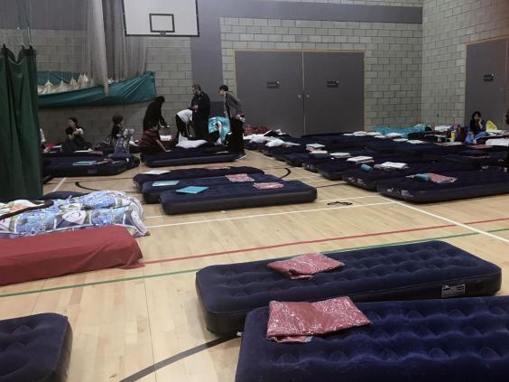 The council said it was booking hotels for residents but around 100 people had to spend the night on air beds in a leisure centre.